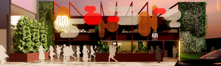 Cliente: FUNSTAGE - Batel, Curitiba/PR - Casa de Shows - Área: 1980m²- Readequação de imóvel, antiga SHED, para atividades de casa de shows com música ao vivo e amplificada, gastrobar e rooftop, desenvolvimento do projetos de controle de ruídos na vizinhança, conforto acústico e sonorização.