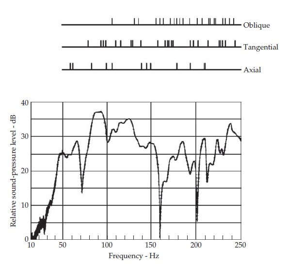 Agora, se o ambiente já está construído, a tarefa do especialista é determinar qual entre as centenas de frequência modais no ambiente estão “sobrando”, ou seja, são mais prováveis de causar defeitos de timbre audíveis.