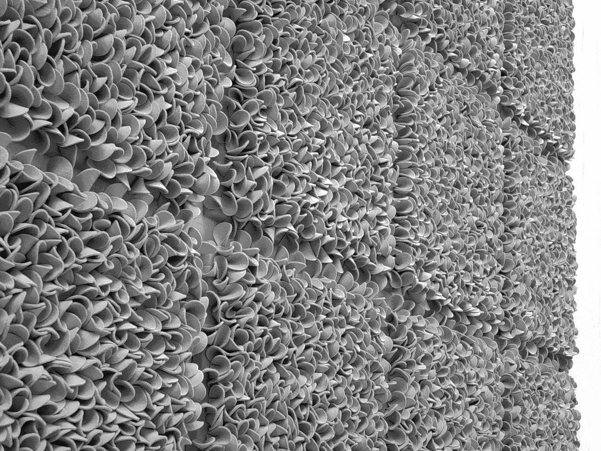 - Materiais: são chamados de absorsores. A característica principal é serem macios e fibrosos. A família das lãs (de vidro, de rocha e de pet), feltros, carpetes, espumas e outros tecidos com espessura considerável e trama não muito estreita ou muito esparsas. Podem estar dispostos atrás de painéis vazados, perfurados ou ranhurados, revestidos ou cobertos por tecidos. Podem ser integrados ao forro, às paredes e pisos, dependendo do uso de cada local. Atuam dissipando as ondas sonoras principalmente nas médias e altas frequências (onde o ouvido é mais sensível), porém na região das frequências graves podem ser aplicados em sistemas massa mola como forma de ampliar a banda de atuação de painéis de absorção ressonantes.