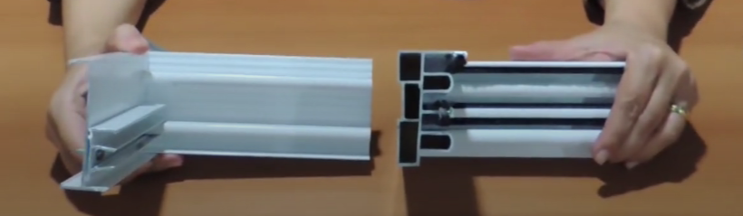 Ela diz que é por isso que a Acoustic Slim 2.0 funciona tão bem, pois além de bem vedada, utiliza perfis de alumínio patenteados robustos, com aproximadamente 1,5kg por metro linear, composto diversas câmaras que dificultam ainda mais a passagem de som entre ambientes, o que é aproximadamente o dobro de uma janela comum, que geralmente tem em média 700g por metro linear, ver imagem abaixo.